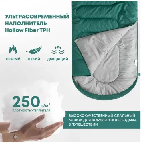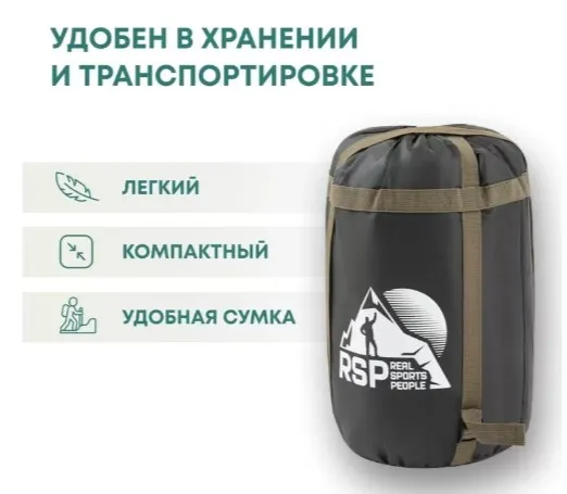 Спальный мешок RSP Sleep 250 BIG R (зелёный, 22590см, молния справа)