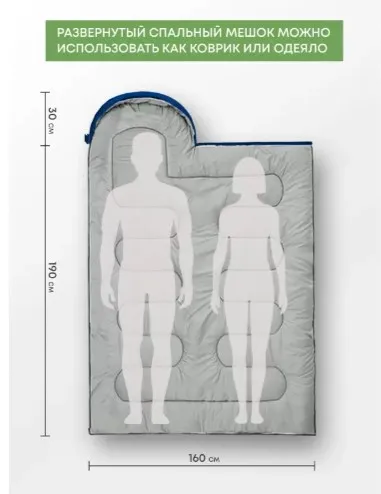 Спальный мешок RSP Sleep 250 — легкая и компактная модель для сна на природе с ранней весны до поздней осени. Подходит для автомобильных путешествий, пеших и велосипедных походов. Форма одеяла с двухсторонней молнией позволяет использовать его как большое одеяло или подстилку. В области груди и ног предусмотрены усиленные секции с дополнительной набивкой для защиты от холода. Внутри есть карман для телефона или документов, в комплекте — подушка. Защитная лента на молнии предотвращает закусывание ткани и продлевает срок службы. Два спальника с разным направлением молнии можно состегнуть в один шириной 160 см — для двоих или двоих с ребенком. Внешняя ткань — Polyester Rip Stop 210T 68D с водоотталкивающей пропиткой: прочная, износостойкая, мягкая, защищает от влаги. Подкладка — дышащий Polycotton T/R 88X64 с хлопком: легкий, приятный к телу, эффективно отводит влагу. Утеплитель Hollow Fiber TPH с микропорами создает воздушные камеры, обеспечивая тепло при малом весе. Упругие волокна быстро расправляются после распаковки.Бренд: RSP