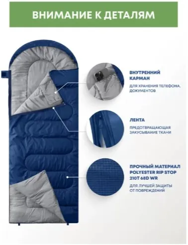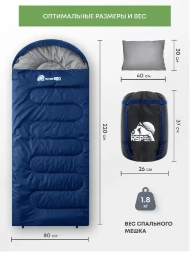 Спальный мешок RSP Sleep 250 L (синий, 22080см, молния слева)
