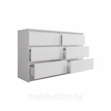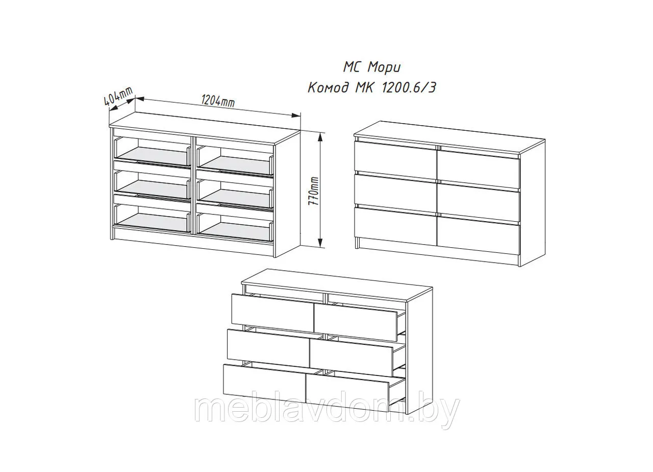 Комод Мори — это практичное, элегантное и многофункциональное решение, которое легко впишется в любой современный интерьер. Модель оборудована шестью выдвижными ящиками с роликовыми направляющими. Комод можно использовать как отдельный элемент декора, но он будет особенно хорошо смотреться в сочетании с другими предметами из той же коллекции.